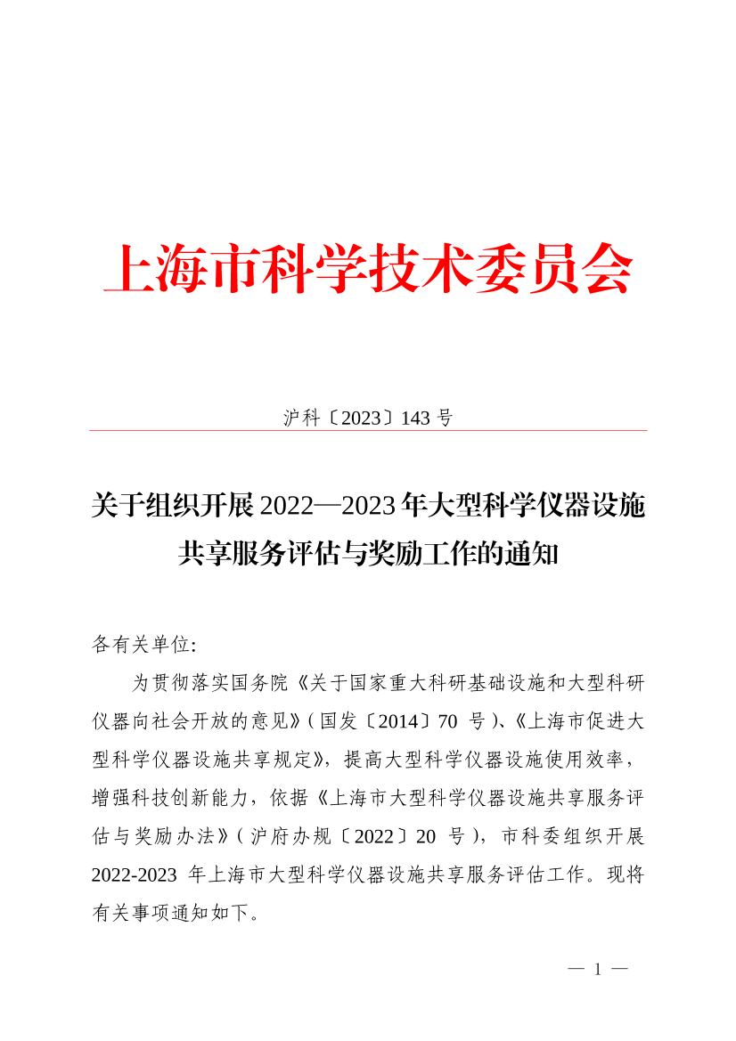 关于组织开展2022—2023年大型科学仪器设施共享服务评估与奖励工作的通知