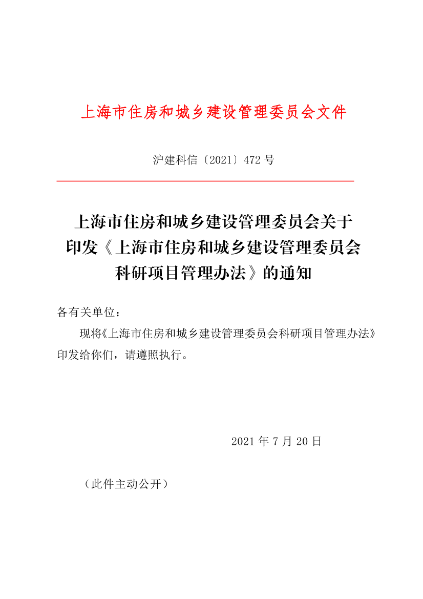 关于印发《上海市住房和城乡建设管理委员会科研项目管理办法》的通知