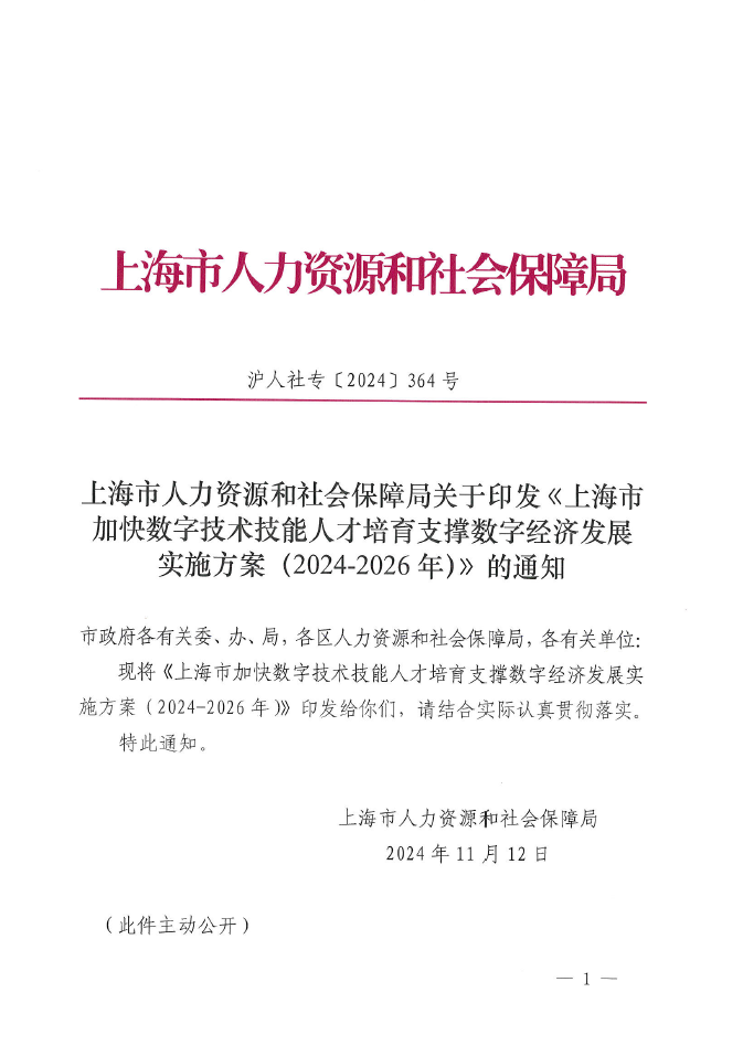 上海市加快数字技术技能人才培育支撑数字经济发展实施方案(2024-2026年)