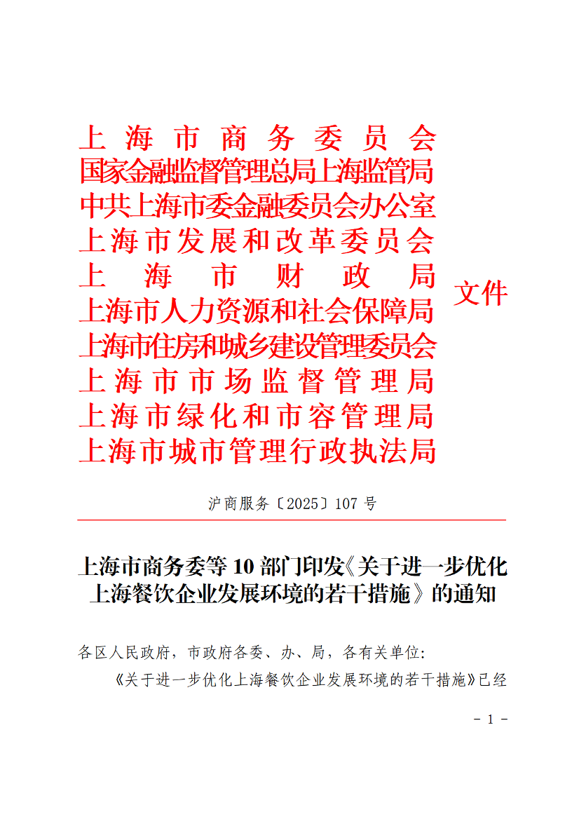 关于进一步优化上海餐饮企业发展环境的若干措施
