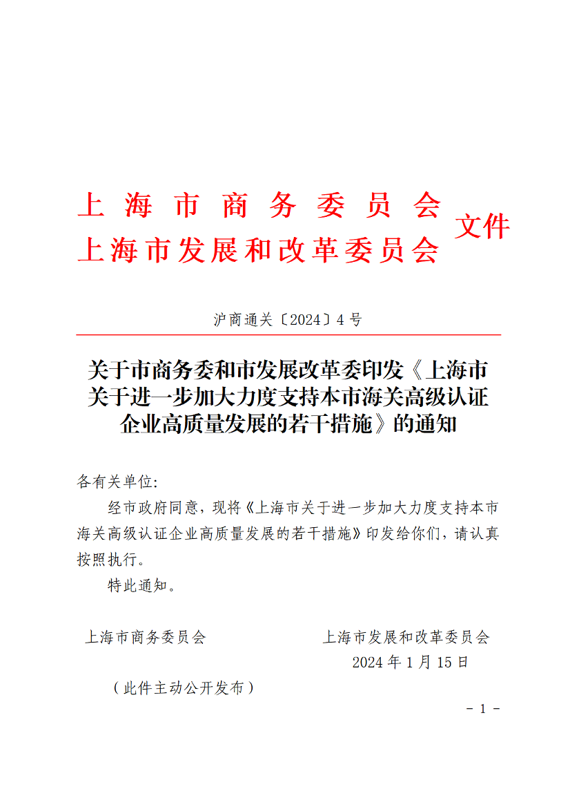 上海市关于进一步加大力度支持本市海关高级认证企业高质量发展的若干措施