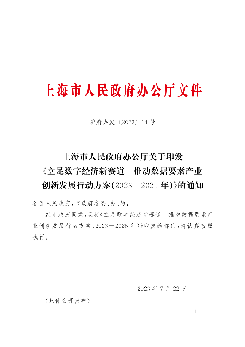 上海市人民政府办公厅关于印发《立足数字经济新赛道推动数据要素产业创新发展行动方案(2023-2025年)》的通知