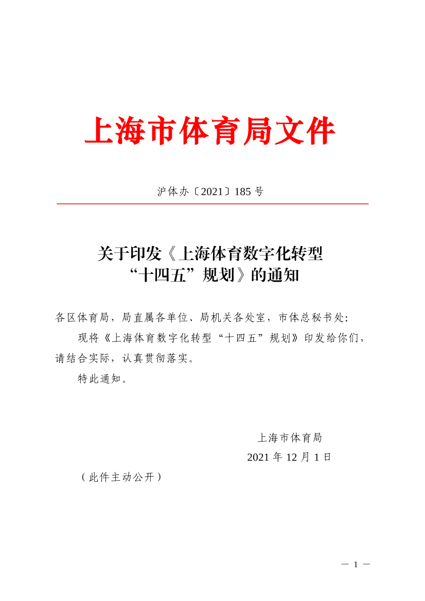 现将《上海体育数字化转型“十四五”规划》印发给你们,请结合实际,认真贯彻落实。