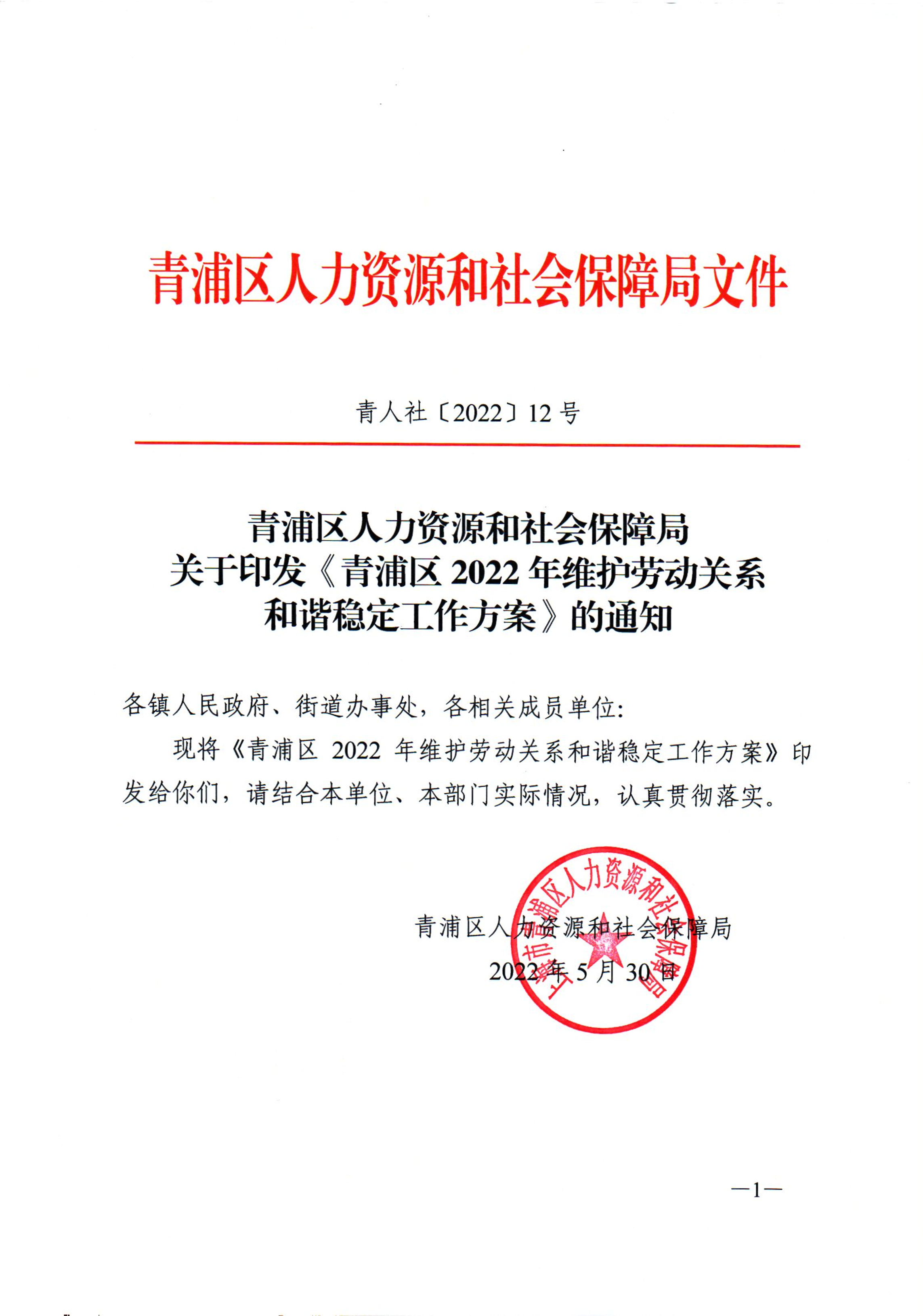 青浦区2022年维护劳动关系和谐稳定工作方案