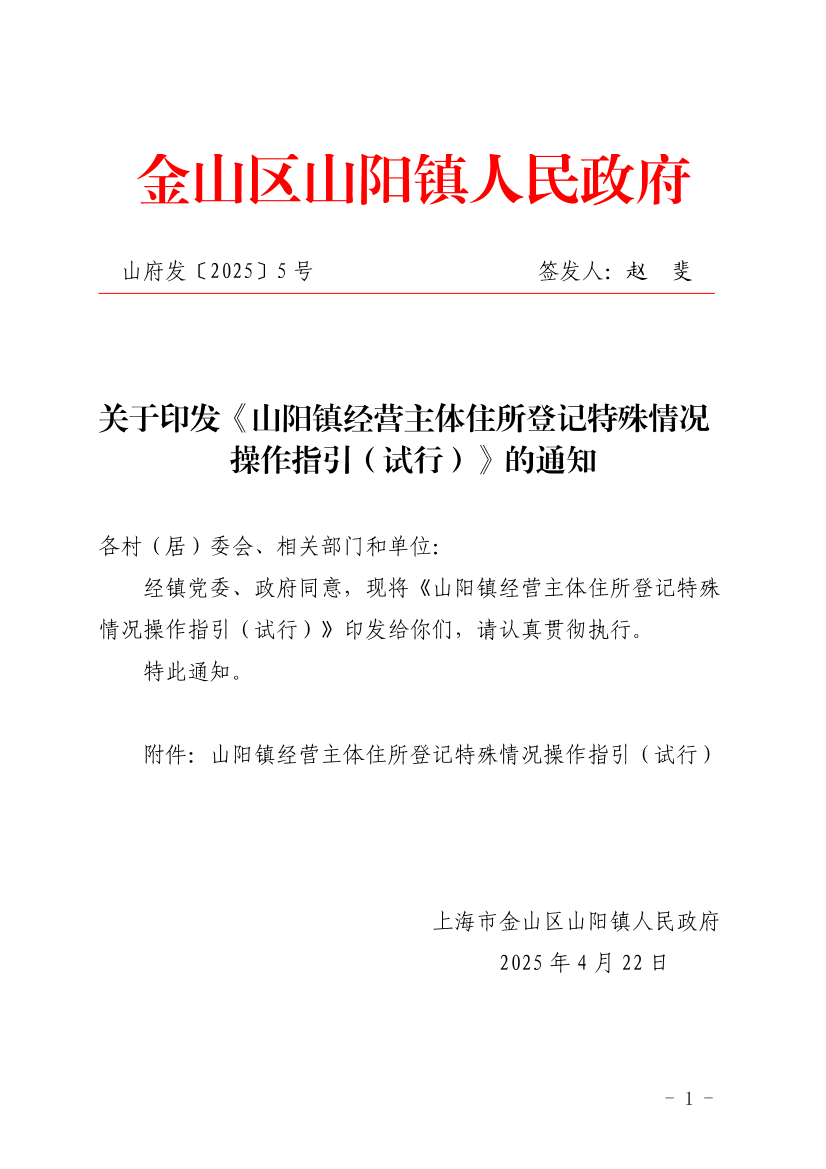 关于印发《山阳镇经营主体住所登记特殊情况操作指引(试行)》的通知
