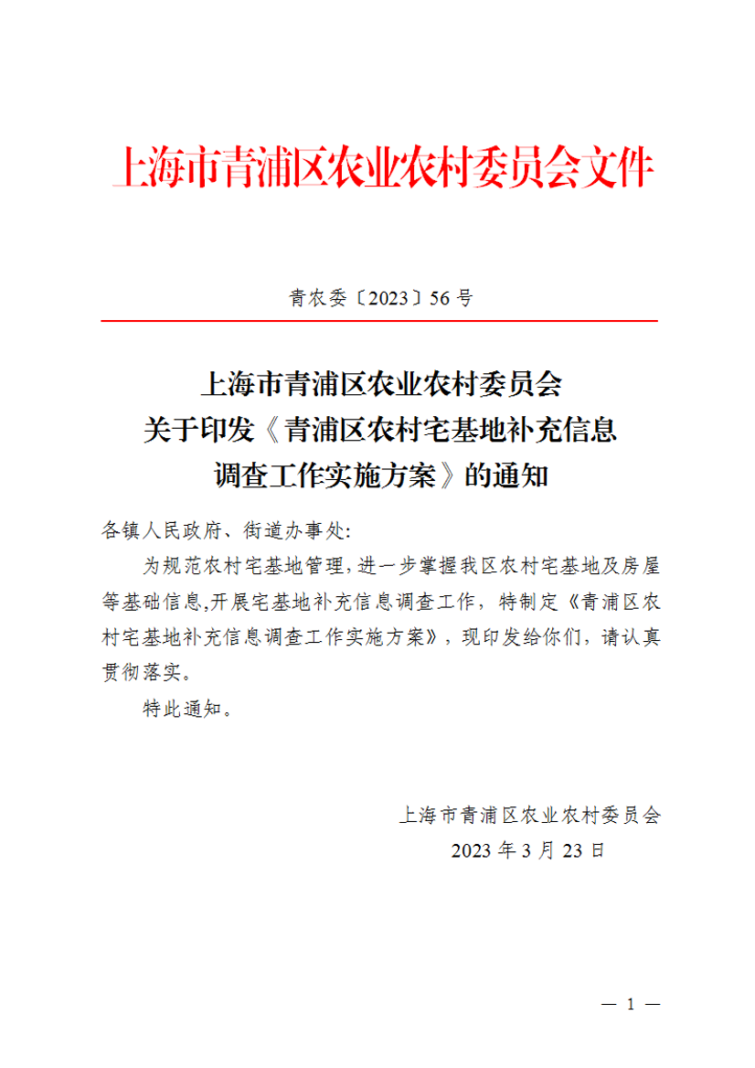 关于印发《青浦区农村宅基地补充信息调查工作实施方案》的通知