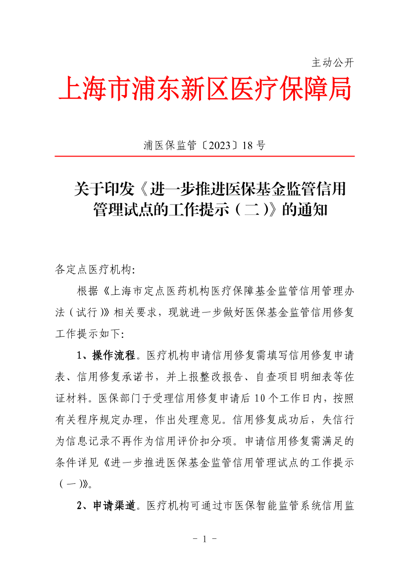 根据《上海市定点医药机构医疗保障基金监管信用管理办法(试行)》相关要求,现就进一步做好医保基金监管信用修复工作提示如下: