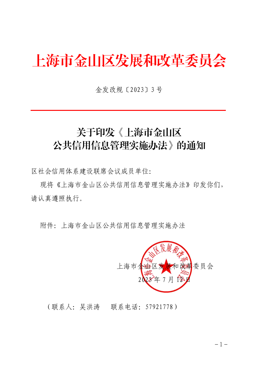 现将《上海市金山区公共信用信息管理实施办法》印发你们,请认真遵照执行。
