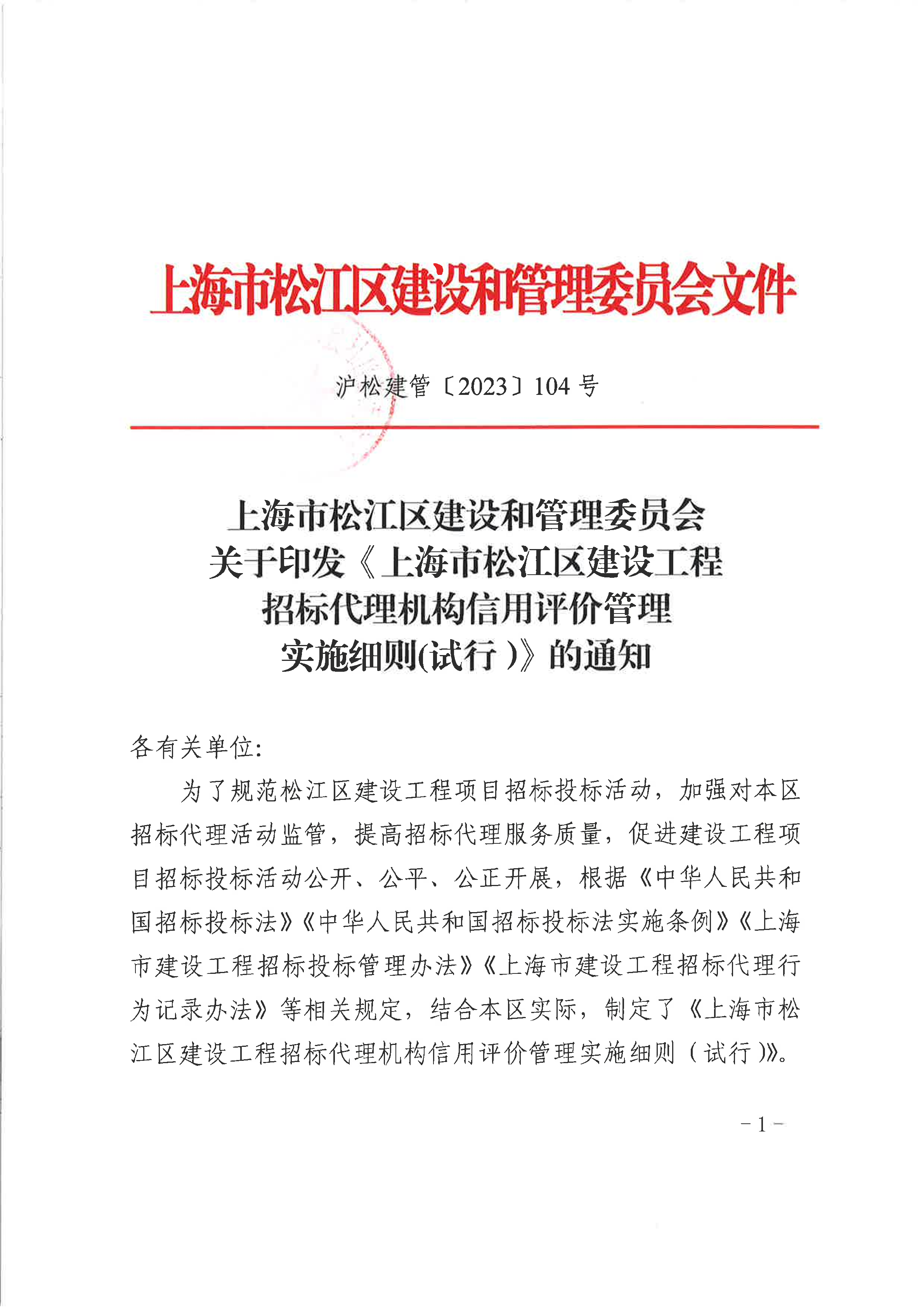 沪松建管〔2023〕104号