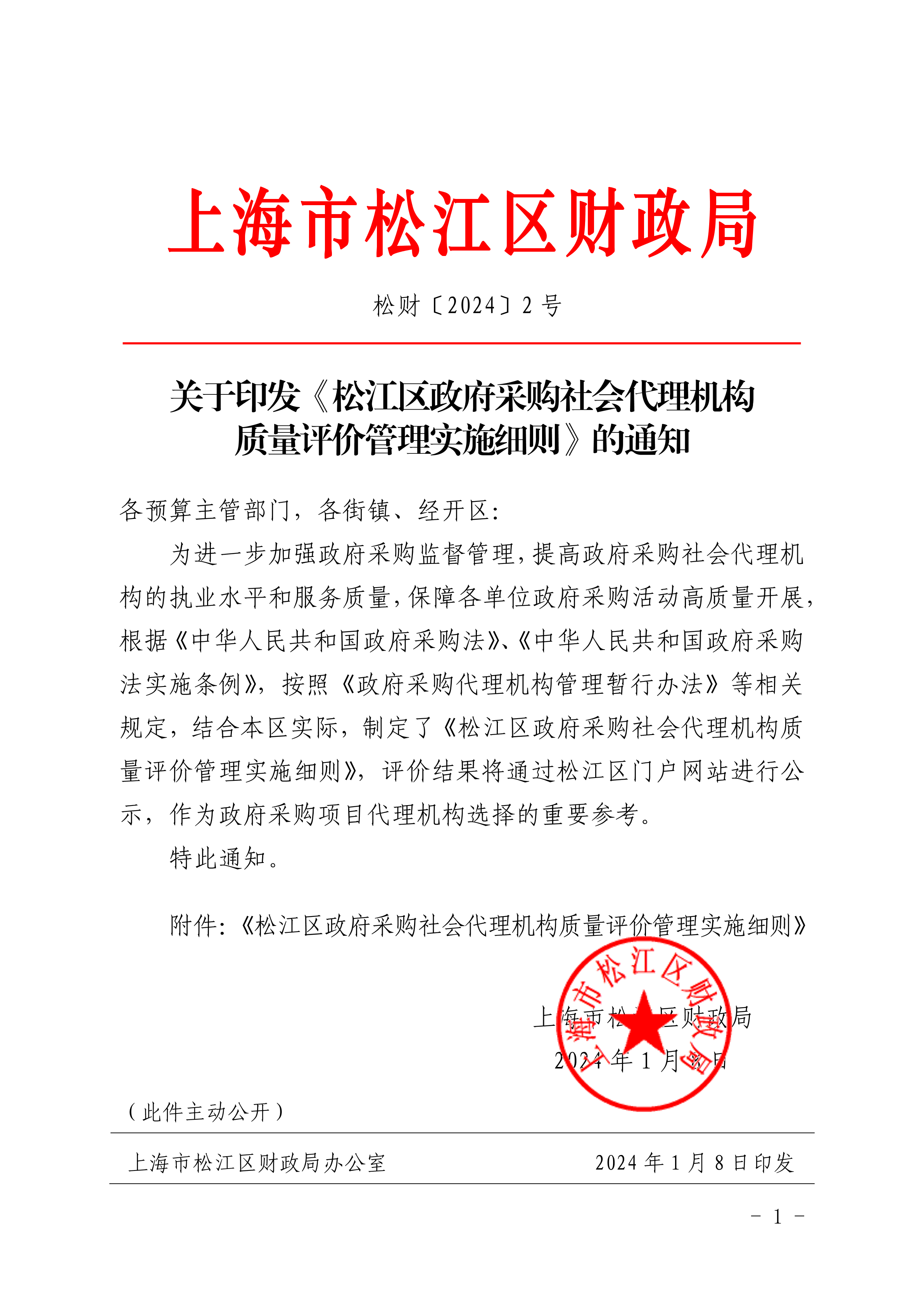 关于印发《松江区政府采购社会代理机构质量评价管理实施细则》的通知