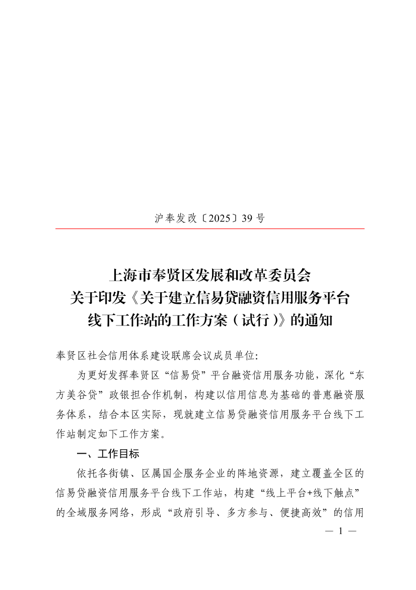 为更好发挥奉贤区“信易贷”平台融资信用服务功能,深化“东方美谷贷”政银担合作机制,构建以信用信息为基础的普惠融资服务体系,结合本区实际,现就建立信易贷融资信用服务平台线下工作站制定如下工作方案。