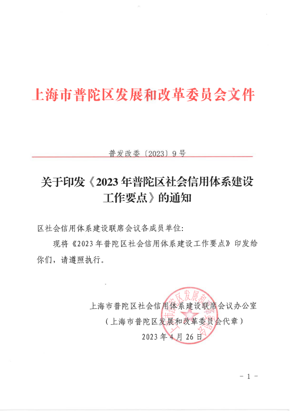 现将《2023年普陀区社会信用体系建设工作要点》印发给你们,请遵照执行。