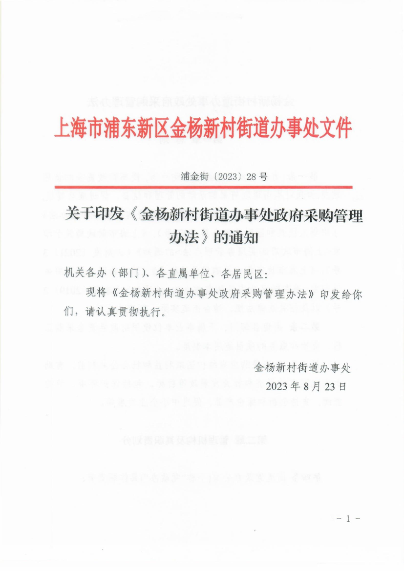 现将《金杨新村街道办事处政府采购管理办法》印发给你们,请认真贯彻执行。
