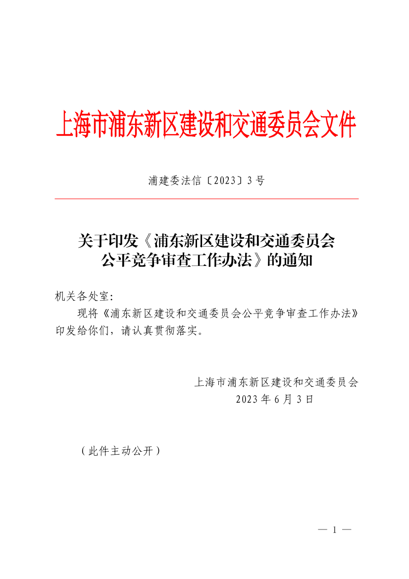 浦东新区建设和交通委员会公平竞争审查工作办法