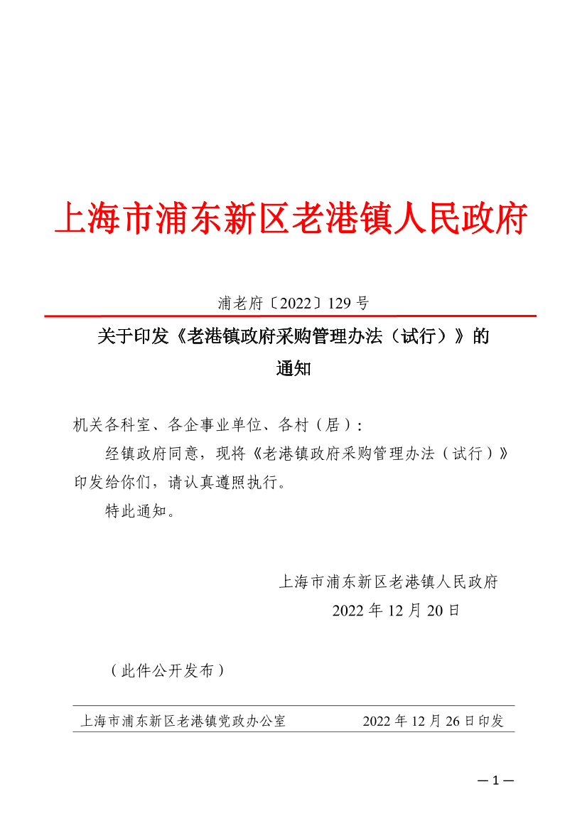 经镇政府同意,现将《老港镇政府采购管理办法(试行)》印发给你们,请认真遵照执行。