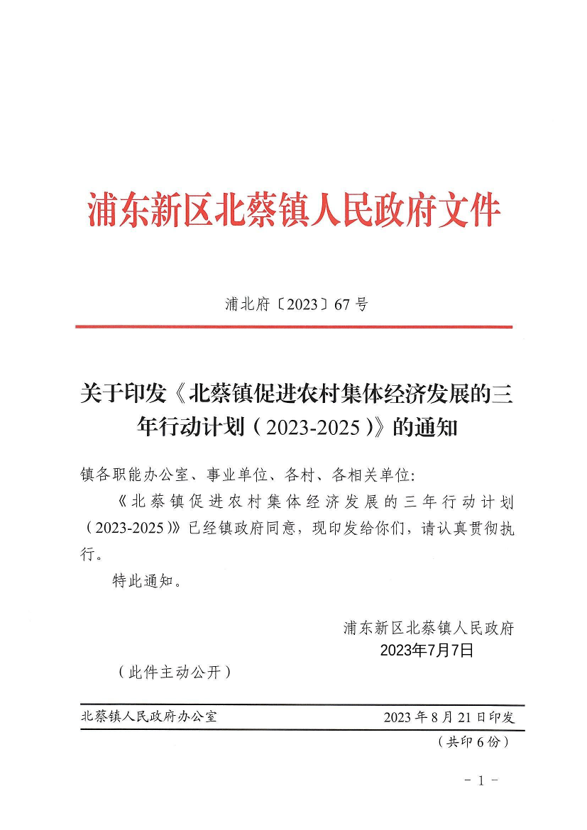 关于印发《北蔡镇促进农村集体经济发展的三年行动计划(2023-2025)》的通知