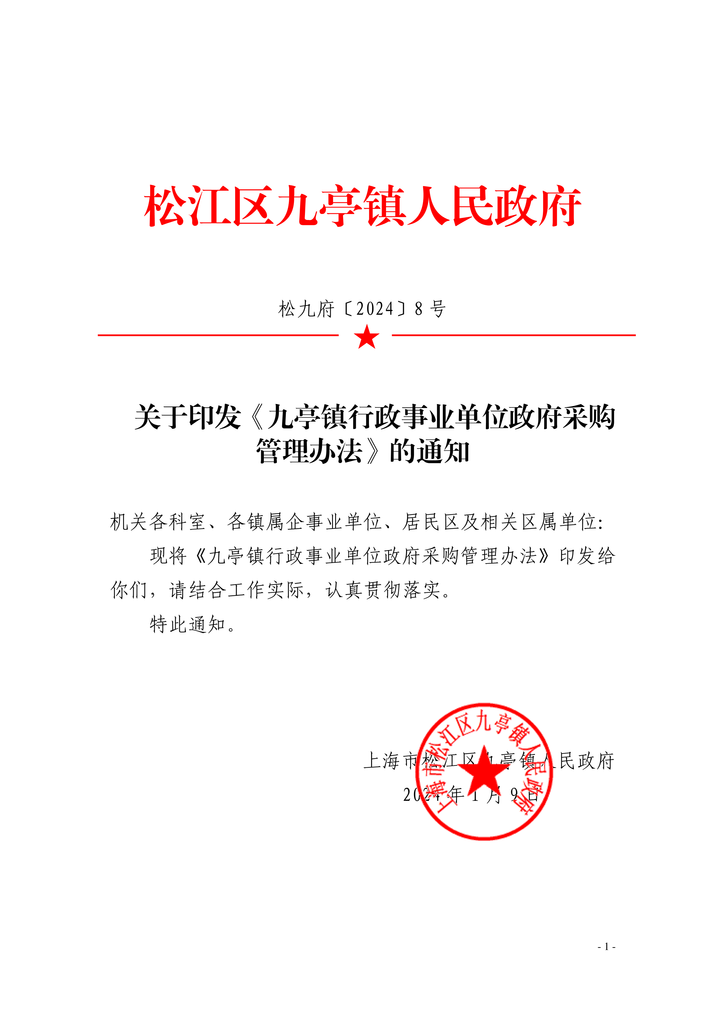 关于印发《九亭镇行政事业单位政府采购管理办法》的通知