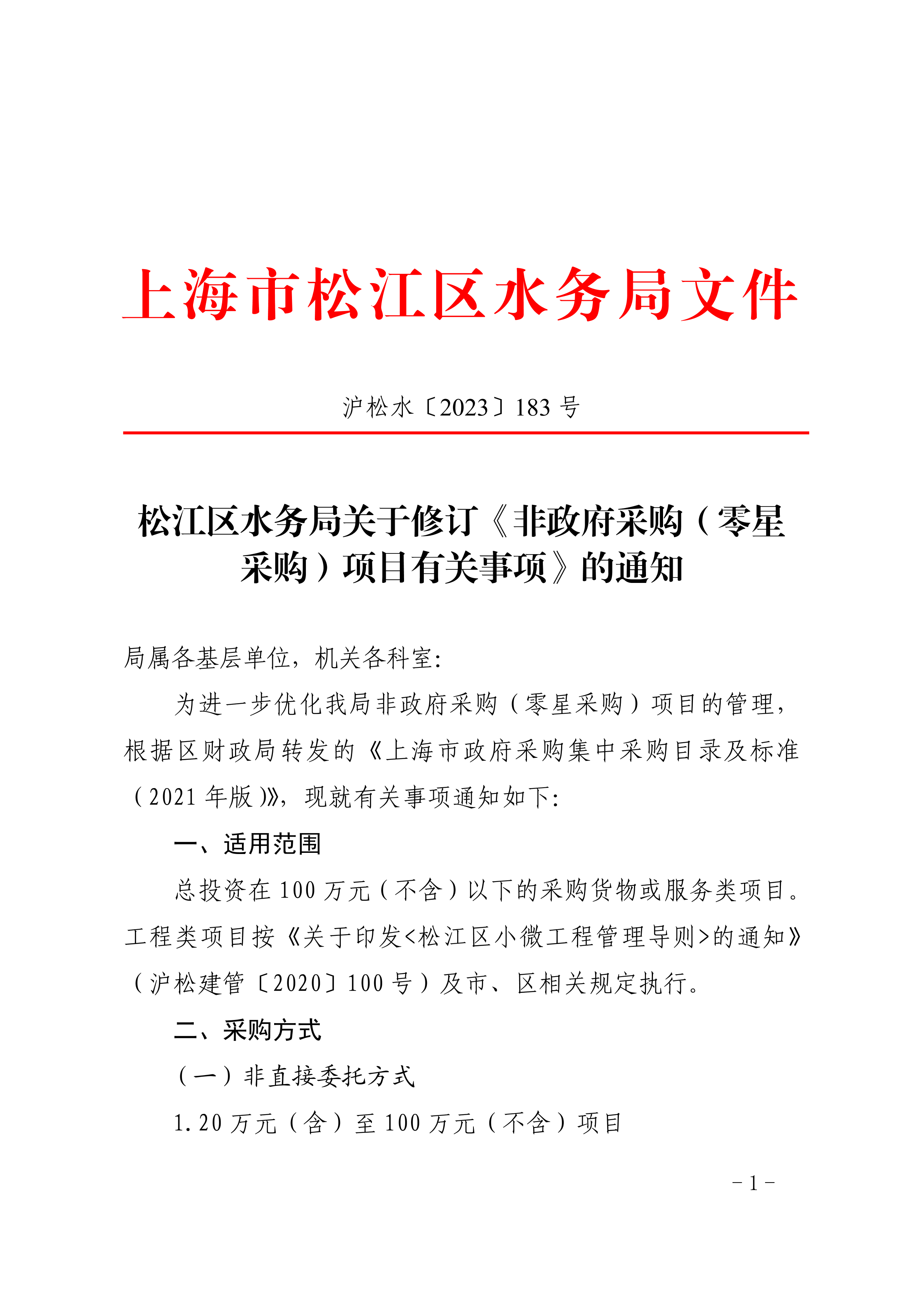 松江区水务局关于修订《非政府采购(零星采购)项目有关事项》的通知