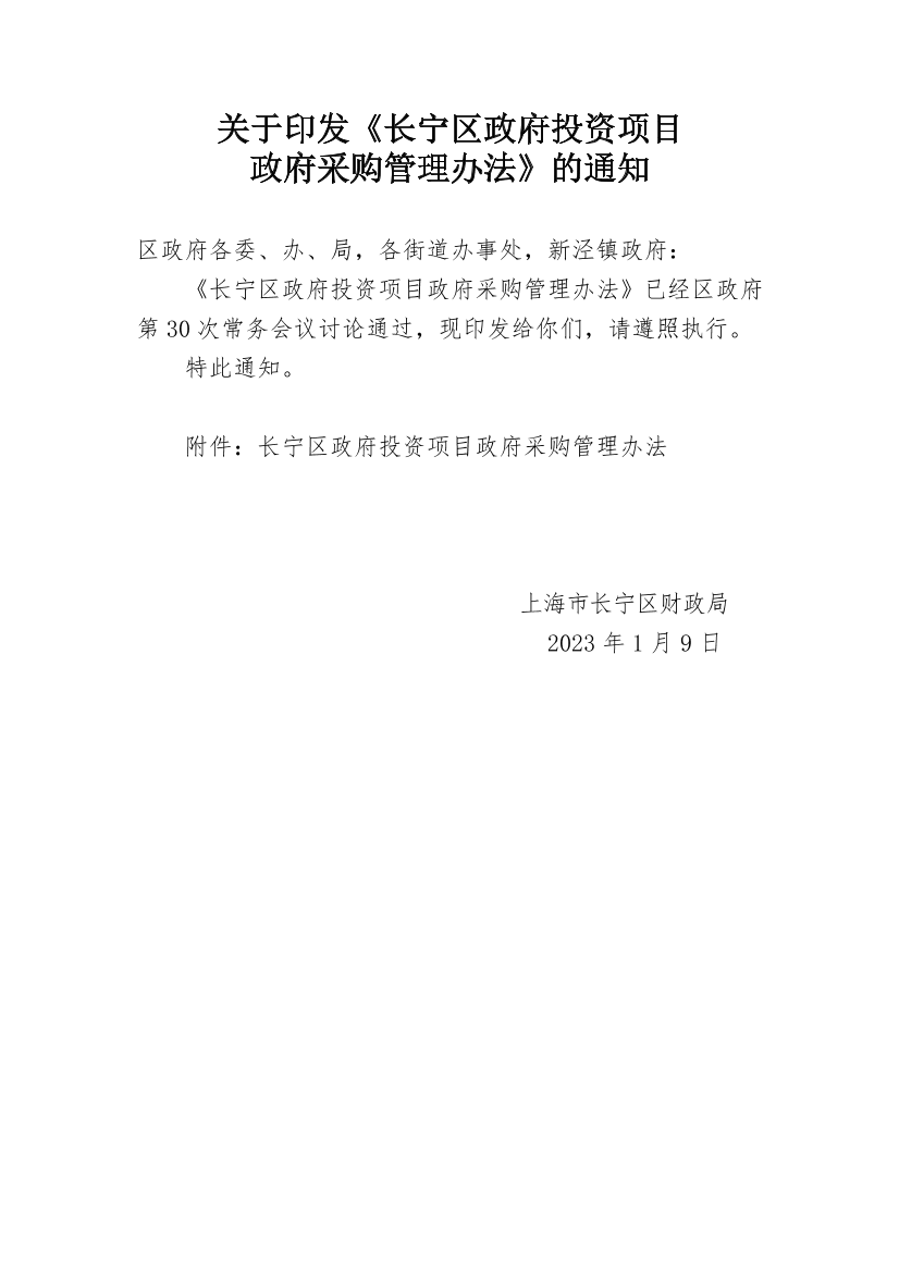 关于印发《长宁区政府投资项目政府采购管理办法》的通知