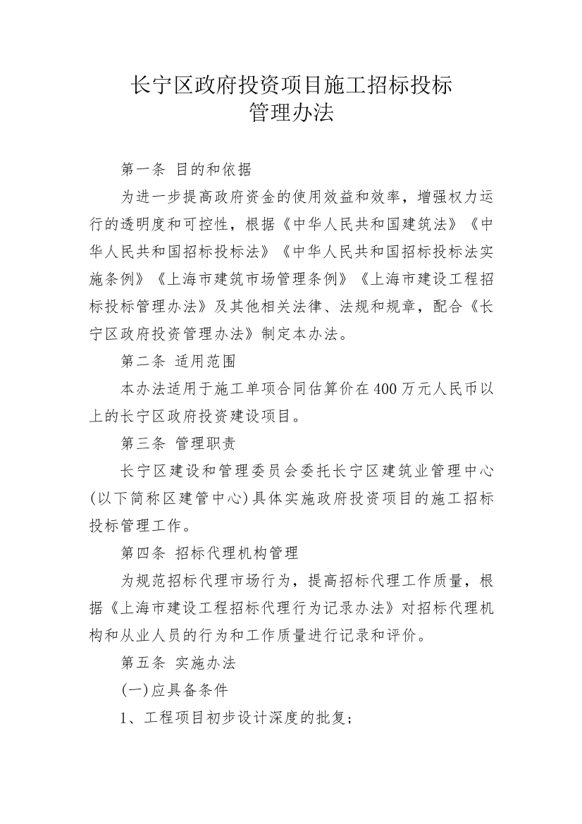 长宁区政府投资项目施工招标投标管理办法