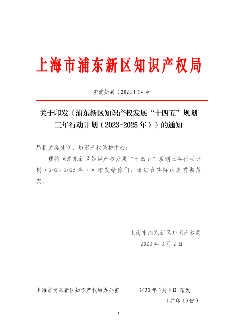 浦东新区知识产权发展“十四五”规划三年行动计划(2023-2025年)