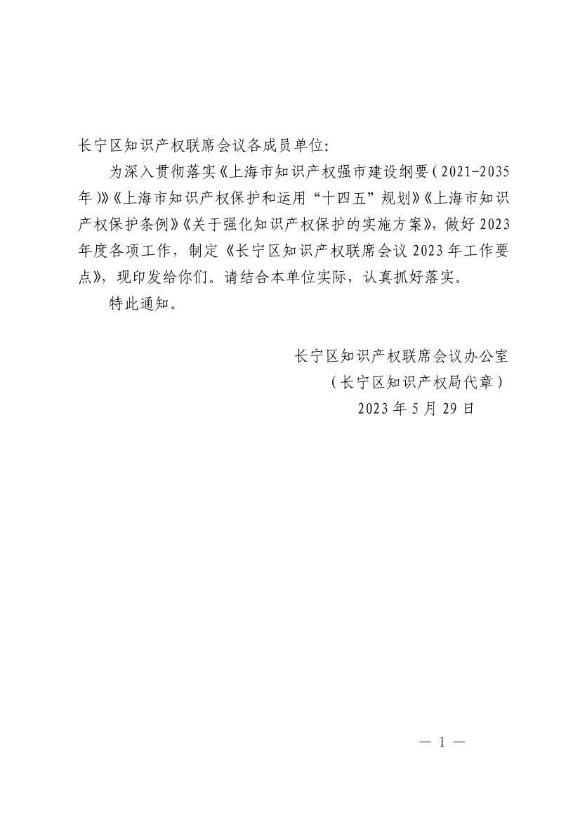 长宁区知识产权联席会议2023年工作要点