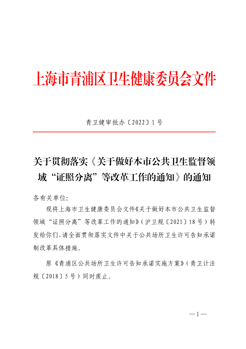 原《青浦区公共场所卫生许可告知承诺实施方案》(青卫计法规〔2018〕5 号)同时废止。