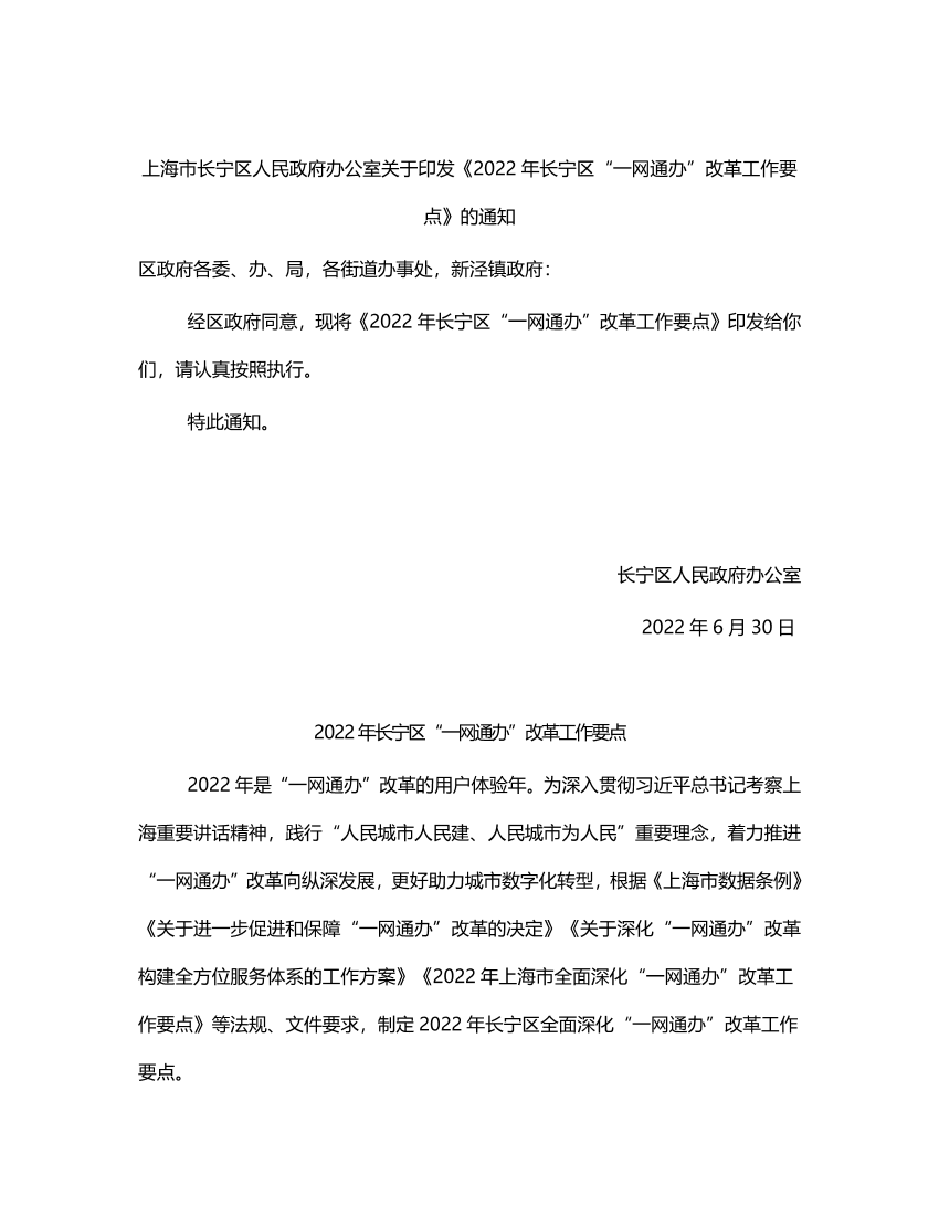 2022年长宁区“一网通办”改革工作要点