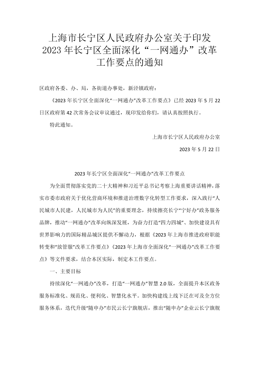 上海市长宁区人民政府办公室关于印发2023年长宁区全面深化“一网通办”改革工作要点的通知