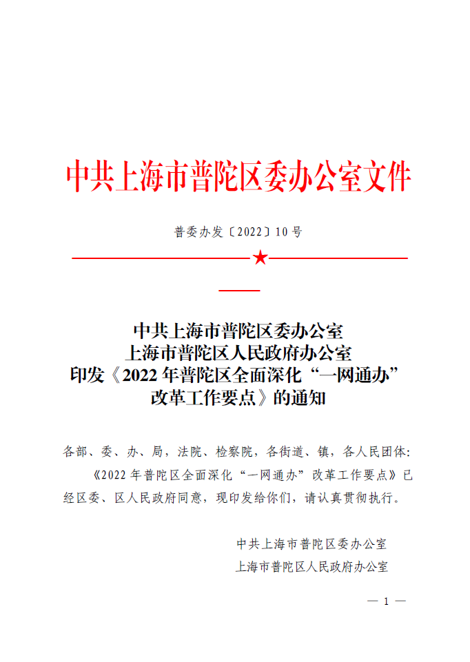 《2022年普陀区全面深化“一网通办”改革工作要点》已经区委、区人民政府同意,现印发给你们,请认真贯彻执行。