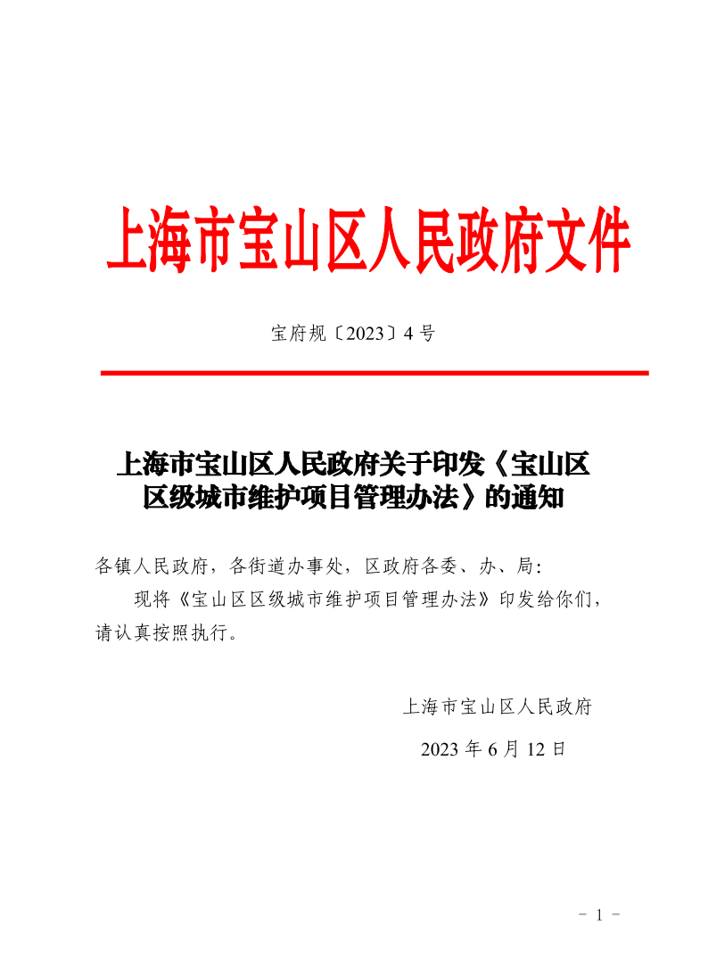 关于印发《宝山区区级城市维护项目管理办法》的通知