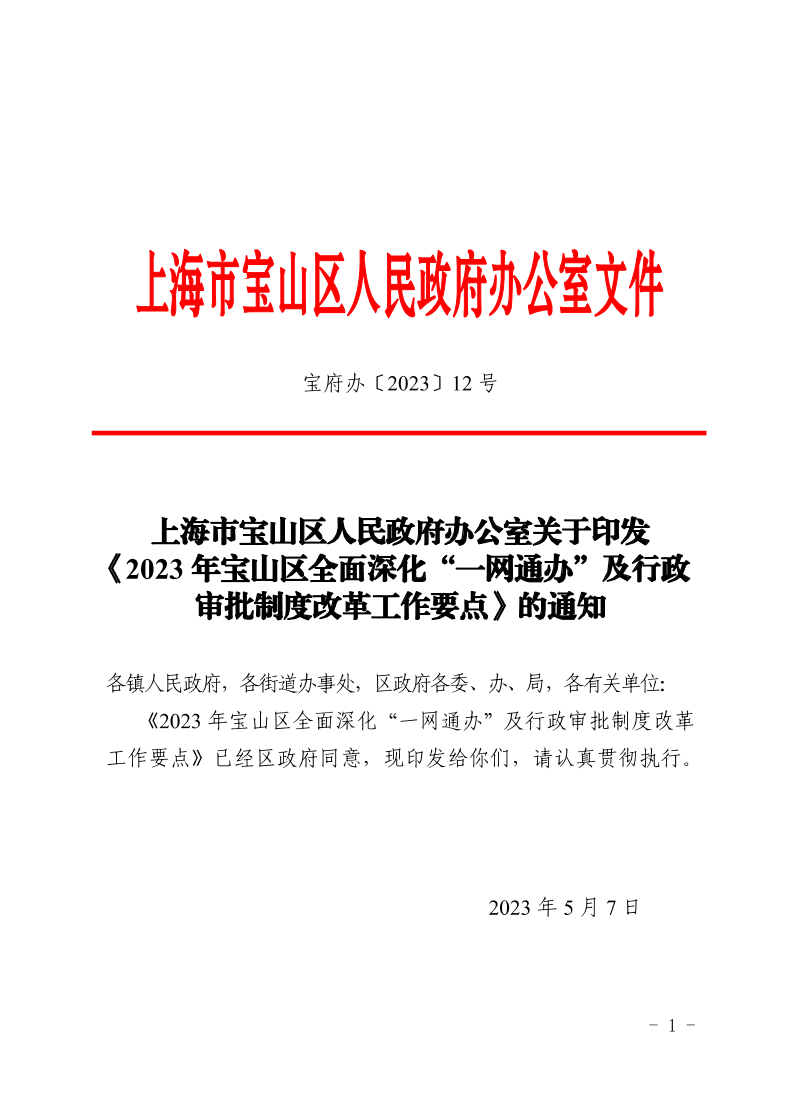 2023年宝山区全面深化“一网通办”及行政审批制度改革工作要点