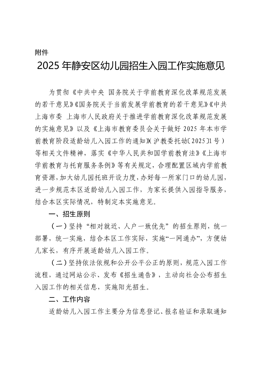 现将《2025年静安区幼儿园招生入园工作实施意见》印发给各园所,请各园所认真贯彻执行。