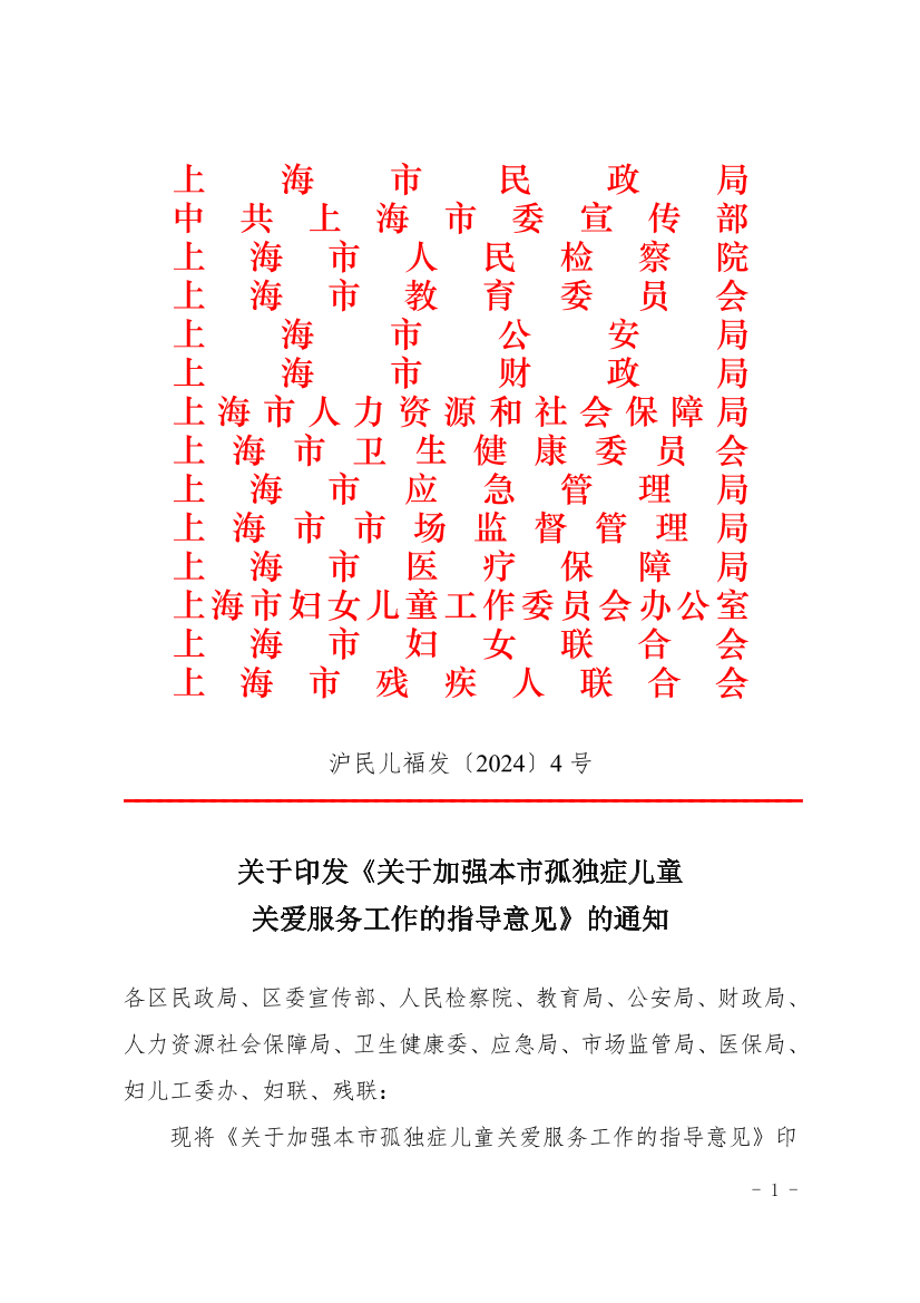 关于印发《关于加强本市孤独症儿童关爱服务工作的指导意见》的通知