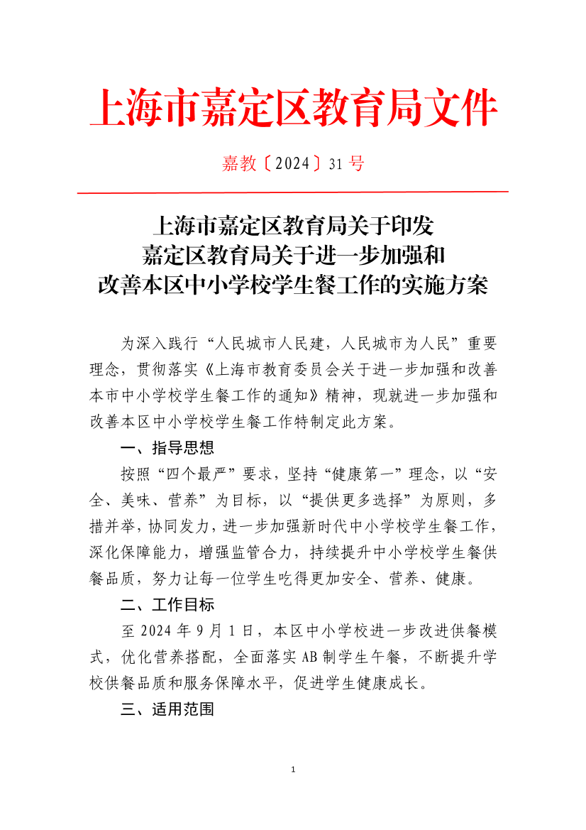 至2024年9月1日,本区中小学校进一步改进供餐模式,优化营养搭配,全面落实AB制学生午餐,不断提升学校供餐品质和服务保障水平,促进学生健康成长。