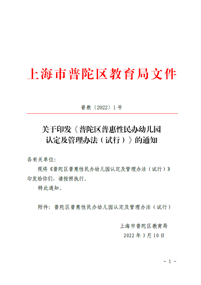 附件:普陀区普惠性民办幼儿园认定及管理办法(试行)