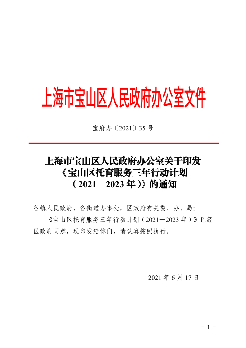 《宝山区托育服务三年行动计划(2021—2023年)》已经区政府同意,现印发给你们,请认真按照执行。