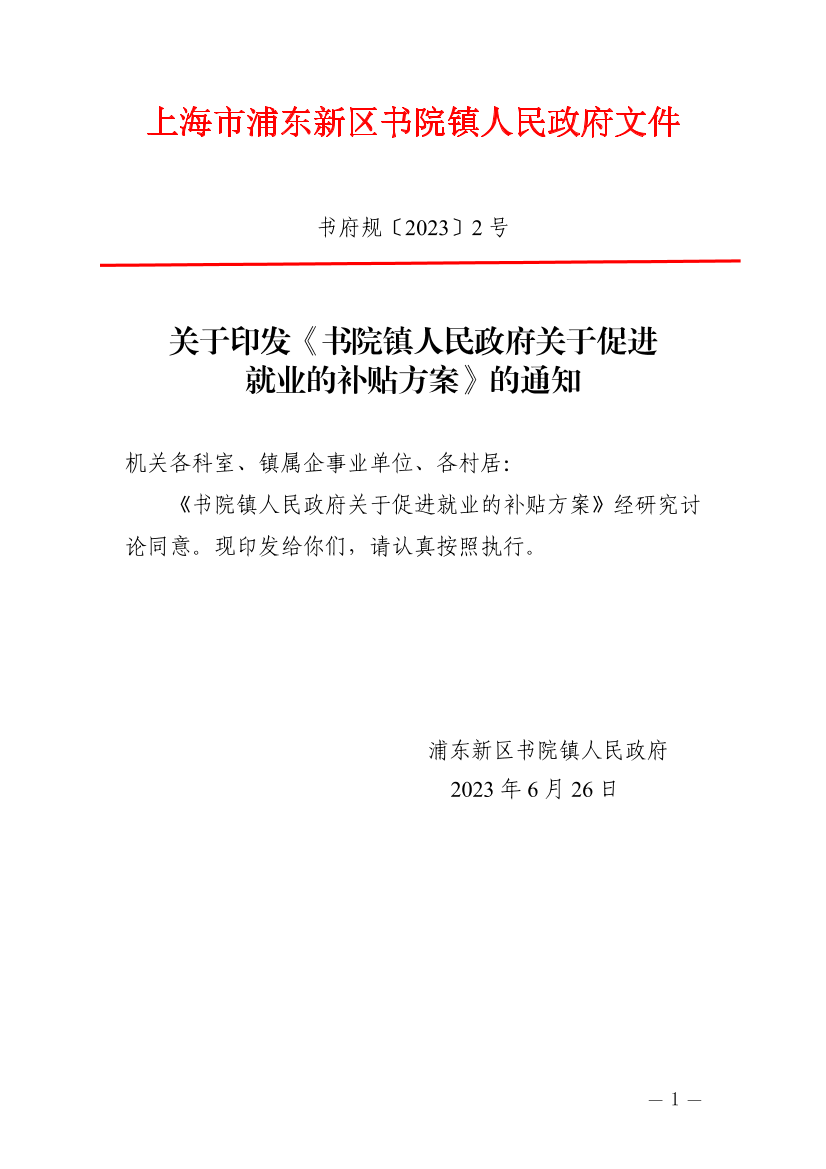 《书院镇人民政府关于促进就业的补贴方案》经研究讨论同意。现印发给你们,请认真按照执行。