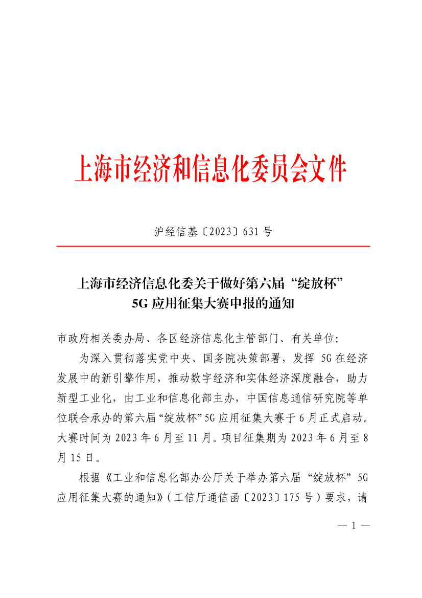 附件:工业和信息化部办公厅关于举办第六届“绽放杯”5G应用征集大赛的通知(工信厅通信函〔2023〕175号)
