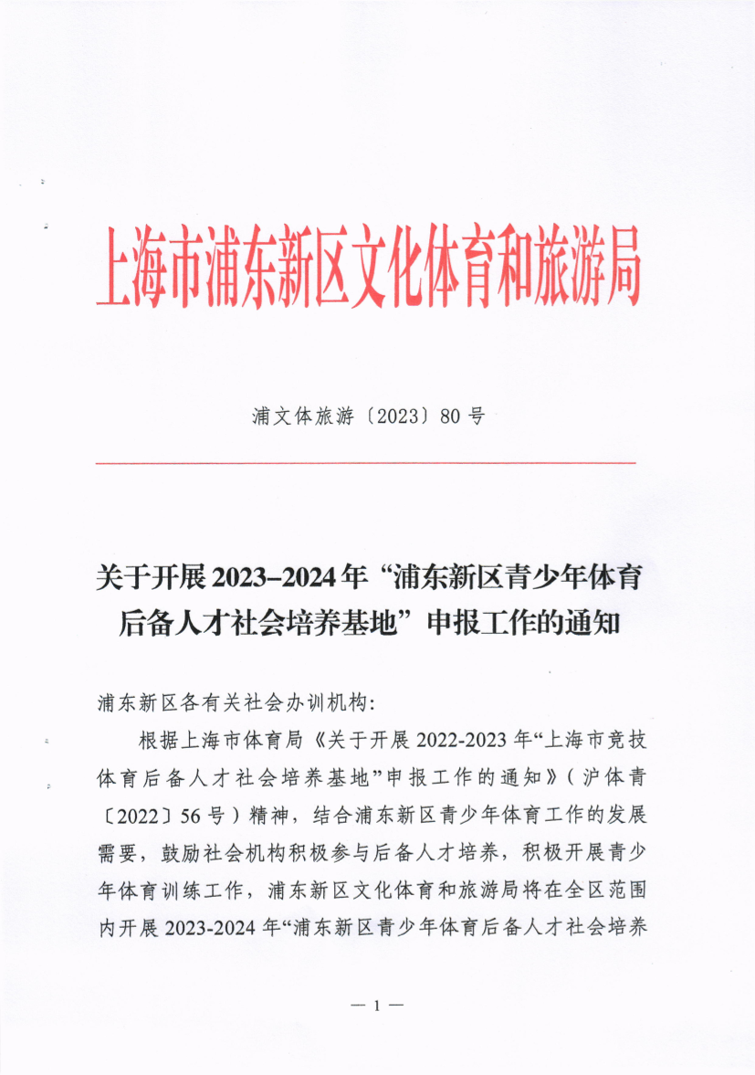 关于开展2023-2024年“浦东新区青少年体育后备人才社会培养基地”申报工作的通知