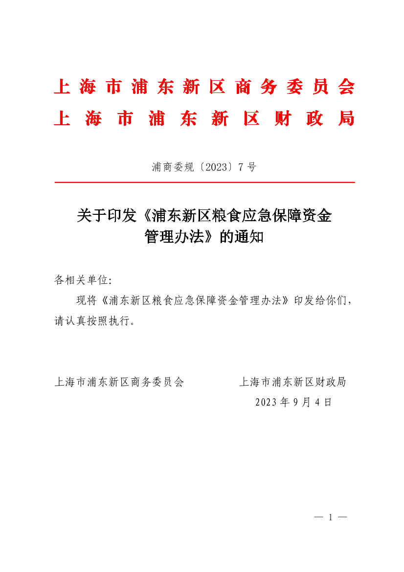 现将《浦东新区粮食应急保障资金管理办法》印发给你们,请认真按照执行。