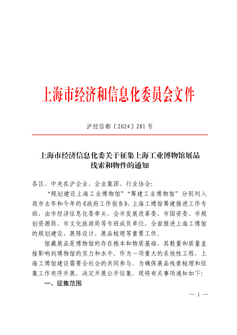 馆藏展品是博物馆的存在根本和物质基础,其数量和质量直接影响到博物馆的实力和水平。作为一项重大的系统性工程,上海工博馆建设需要全社会的共同参与。为确保展品线索梳理和征集工作有序开展,决定开展公开征集。现将有关事项通知如下: