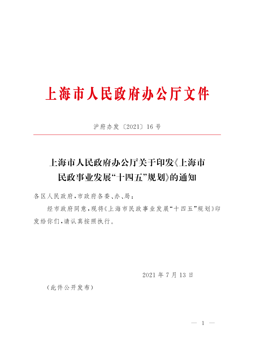 关于印发《上海市民政事业发展“十四五”规划》的通知