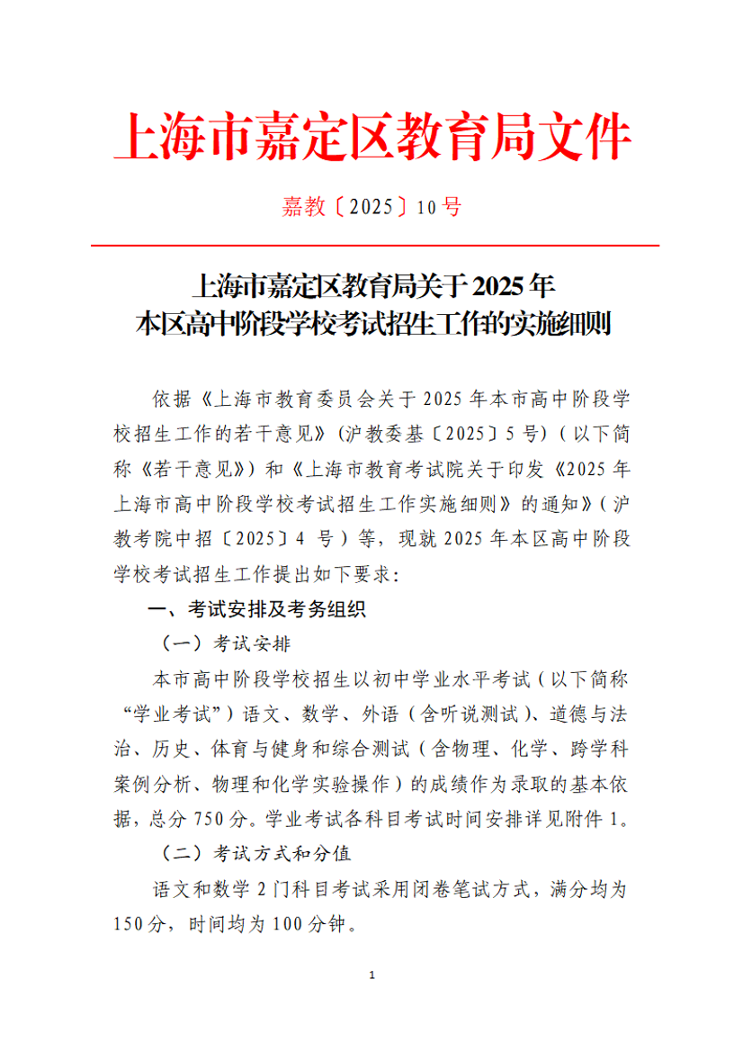 依据《上海市教育委员会关于2025年本市高中阶段学校招生工作的若干意见》(沪教委基〔2025〕5号)(以下简称《若干意见》)和《上海市教育考试院关于印发《2025年上海市高中阶段学校考试招生工作实施细则》的通知》(沪教考院中招〔2025〕4 号)等,现就2025年本区高中阶段学校考试招生工作提出如下要求: