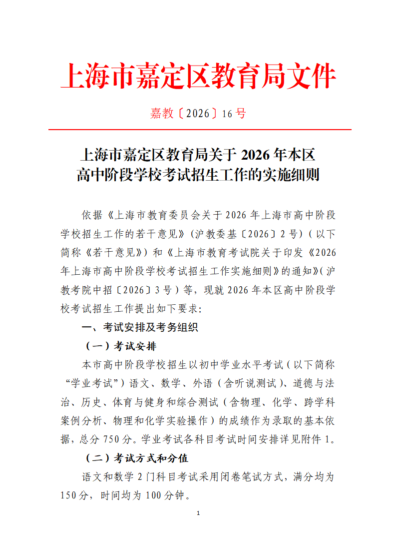 依据《上海市教育委员会关于2026年上海市高中阶段学校招生工作的若干意见》(沪教委基〔2026〕2号)(以下简称《若干意见》)和《上海市教育考试院关于印发《2026年上海市高中阶段学校考试招生工作实施细则》的通知》(沪教考院中招〔2026〕3号)等,现就2026年本区高中阶段学校考试招生工作提出如下要求: