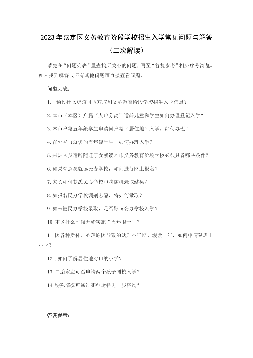嘉定区教育局义务教育阶段学校招生入学咨询电话