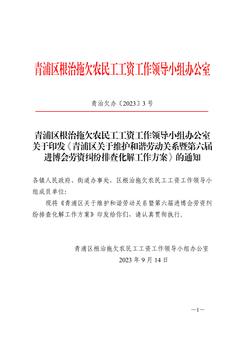 青浦区关于维护和谐劳动关系暨第六届进博会劳资纠纷排查化解工作方案
