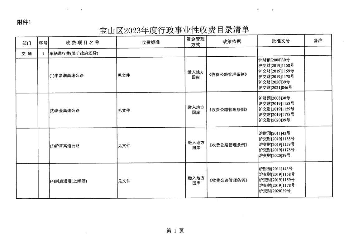 关于公布宝山区2023年度行政事业性收费目录清单的通知