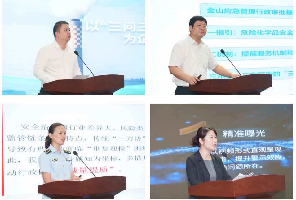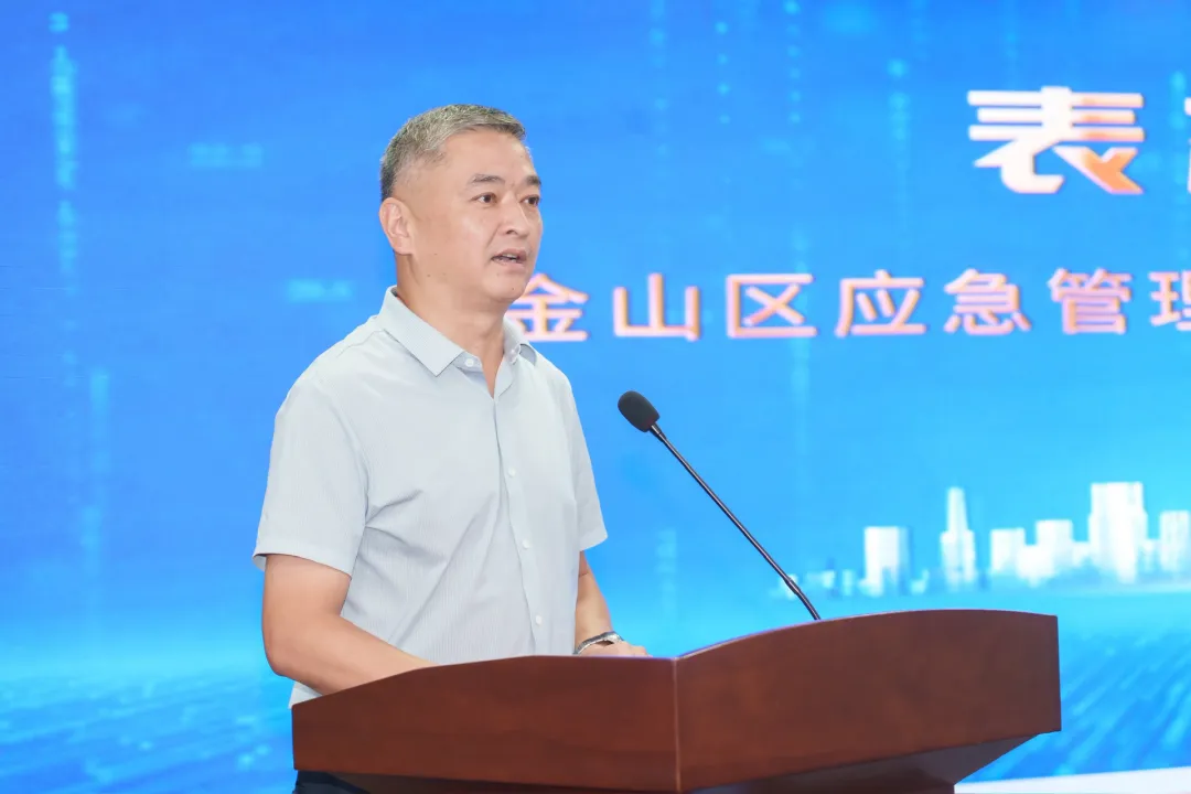 盛尉代表金山应急作表态发言。他表示,金山区应急管理局将以更高站位、更实举措、更优作风,全面投身于优化营商环境的时代大局中:一是深刻把握“优化营商环境”的时代意义,始终坚持“服务为先”;二是“剩下我来”从承诺到实践,打造“有呼必应”的应急队伍;三是全面构建“亲清统一”的政商关系,营造“双向奔赴”的良好生态。这份承诺,既是对“放心发展剩下我来”的践行,也是对全区企业的郑重回应。