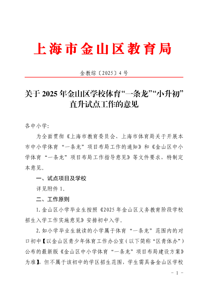 1.2025年金山区学校体育“一条龙”“小升初”优秀体育学生直升计划表